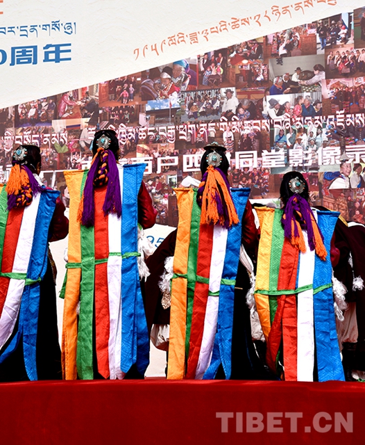 跳舞的演員們來(lái)自拉薩市墨竹工卡縣普堆巴宣舞團(tuán),她們表演的是藏族最古老的一種歌舞——普堆巴宣舞,這一古老的歌舞形式已在墨竹工卡縣直孔一帶傳承已久,2008年被列為國(guó)家級(jí)第二批非物質(zhì)文化遺產(chǎn)名錄。
