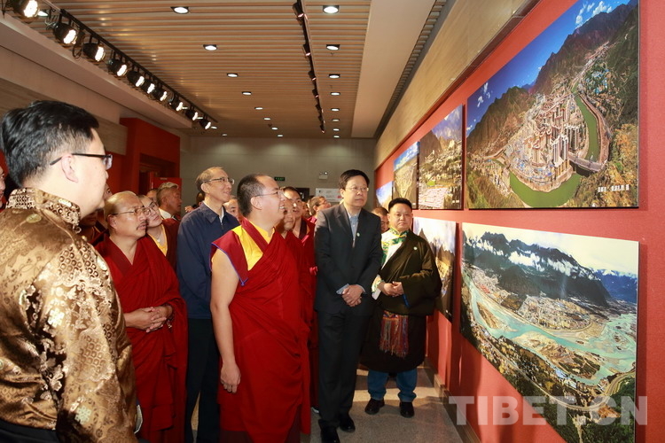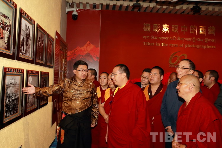 圖為十一世班禪參觀“攝影家眼中的西藏”攝影展