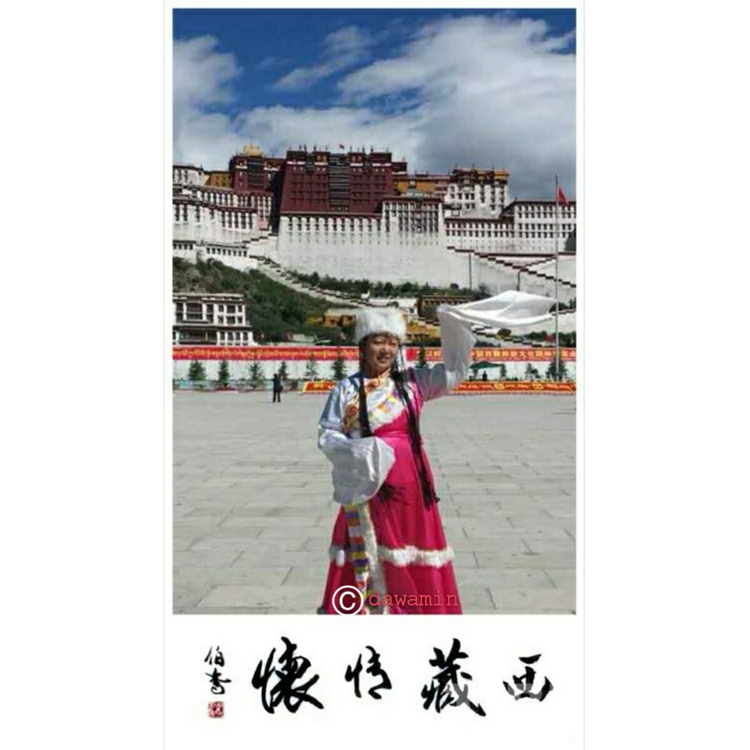 圖為2014年10月,杜琳的女兒達(dá)娃身著藏裝,在布達(dá)拉宮廣場(chǎng)前留影。圖片由杜琳本人提供
