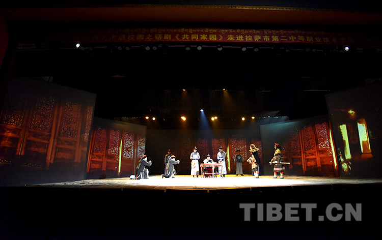 圖為話劇《共同家園》在拉薩市第二中等職業(yè)技術(shù)學(xué)院的專場演出圓滿落幕。