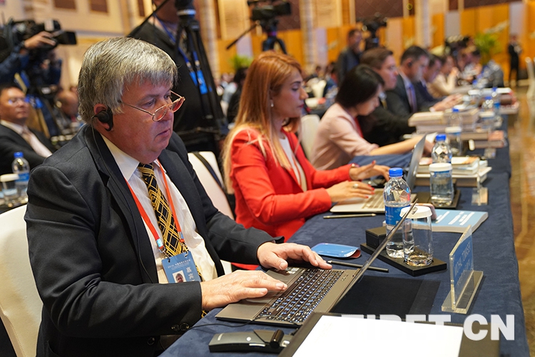 圖為與會(huì)外國(guó)專家學(xué)者致辭 攝影:索朗加措