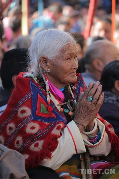 圖為接受長壽灌頂?shù)男沤倘罕?攝影:王淑