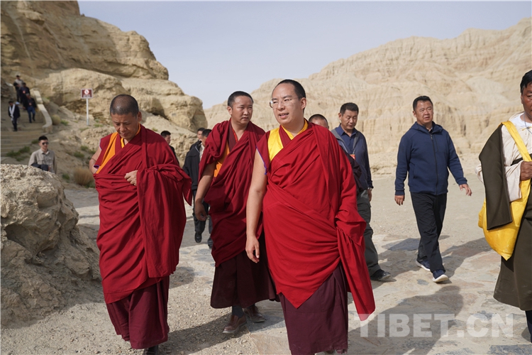 7月25日,十一世班禪一行參觀朝拜古格王朝遺址。古格王朝遺址位于西藏自治區(qū)阿里地區(qū)。位于西藏自治區(qū)最西端的阿里,平均海拔4500米,被譽(yù)為“世界屋脊的屋脊”,是世界上人口密度最小的地區(qū)之一。這塊看似極不適宜人類居住的高寒之地,卻在距今一兩萬年前便有了人類活動,而象雄、古格王國曾先后在此創(chuàng)造了燦爛的文化。