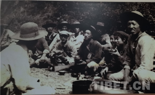 入藏途中,“維西以外至科麥段,須連續(xù)通過高山大河,該區(qū)人煙稀少,糧食困難?!眻D為羊咱的藏族同胞自發(fā)送食品慰勞援藏運輸隊民工