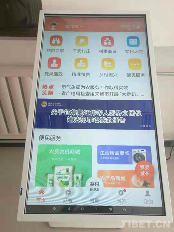 圖為格爾木市郭勒木德鎮(zhèn)政府大廳擺放的“昆侖紅”手機應用軟件首頁 攝影:郝江震