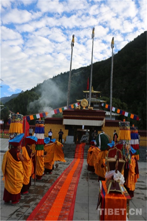 吉隆溝里草木蔥蘢、流水潺潺。8月22日,十一世班禪前往強(qiáng)真寺朝拜禮佛,按照宗教傳統(tǒng)儀軌,寺院僧人列隊恭迎。強(qiáng)真寺位于吉隆鎮(zhèn)邦興村,寺廟始建于7世紀(jì),和拉薩的大昭寺屬同一時期,是格魯派一座歷史悠久的古寺廟。