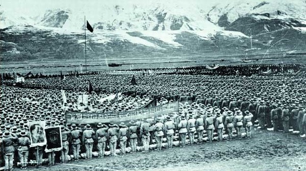 圖為修建進(jìn)藏公路的部隊(duì)進(jìn)行動員大會。圖片來源:人民網(wǎng)