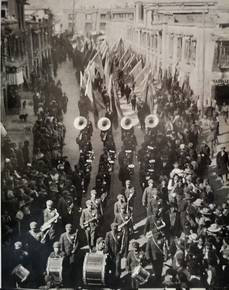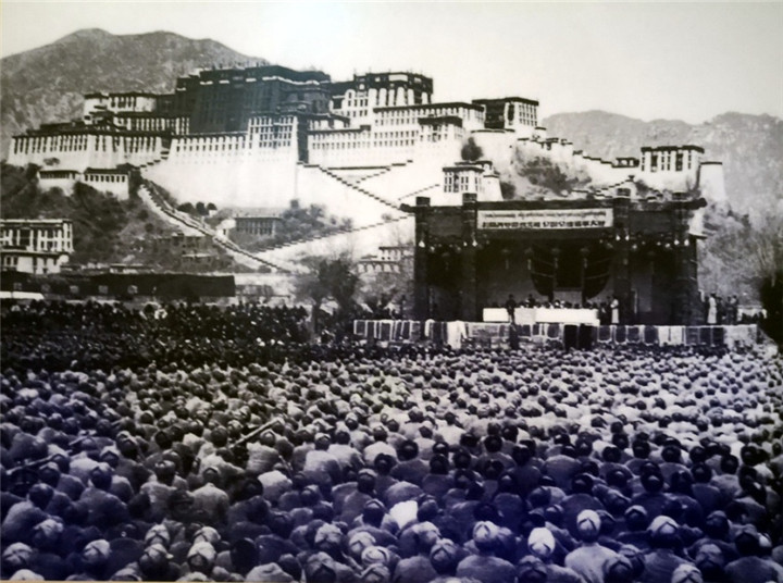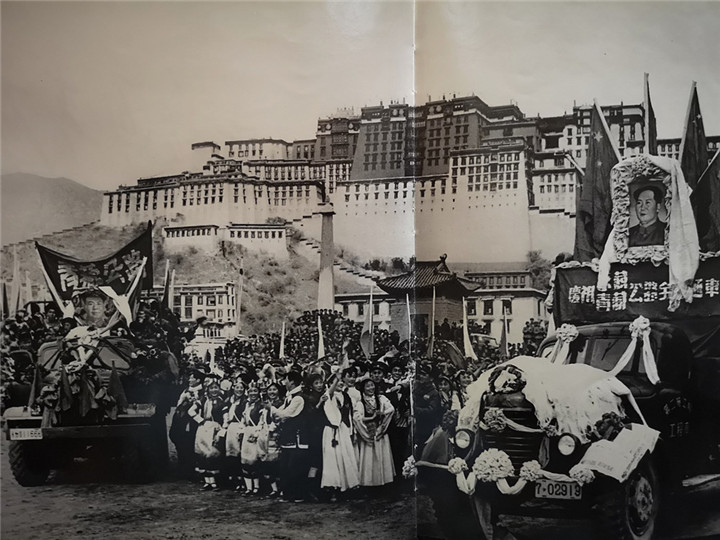 圖為人民解放軍進(jìn)藏部隊(duì)勝利到達(dá)拉薩,各族人民夾道歡迎。翻拍:李元梅