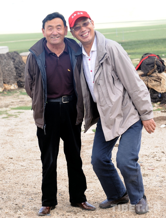 圖為唐召明(右)在班戈縣采訪時,聽說索朗公布從拉薩來到該縣青龍鄉(xiāng)姐姐家探親,專程去看望索朗公布。兩人相見甚是高興,并合影留念 (唐召明2012年8月2日攝)