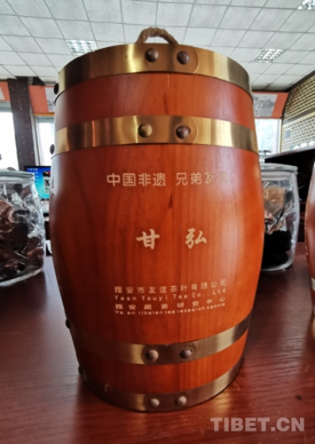 如果說我們從雅安茶廠感受到的還有些內(nèi)斂含蓄,那么“四川雅安市友誼茶葉有限公司”(即“兄弟友誼藏茶”)則更為直觀地反映了藏茶生產(chǎn)加工上的變化。在兄弟友誼的藏茶生產(chǎn)加工譜系中,呈現(xiàn)了一種明顯的藏茶換代取向:第一代為康磚,第二代為金竹,第三代為甘弘??荡u和金尖類采用的是緊壓式的大型茶包,一般康磚每磚重1斤,每條茶包共20塊茶磚,金尖則為每磚重5斤,每條4磚。生產(chǎn)康磚的原料茶采摘于紅苔之上,工藝仍屬于傳統(tǒng)工藝。金竹是康磚、金尖的延續(xù)產(chǎn)品,形式為小竹條包裝,原料采摘于青苔之上,工藝則是該公司的甘氏工藝。甘弘是第三代產(chǎn)品,原料采摘于舒葉之上,工藝也是其自有的甘氏工藝。主打產(chǎn)品和主導(dǎo)工藝的轉(zhuǎn)變顯示了兄弟友誼公司在藏茶上的不斷探索精神。