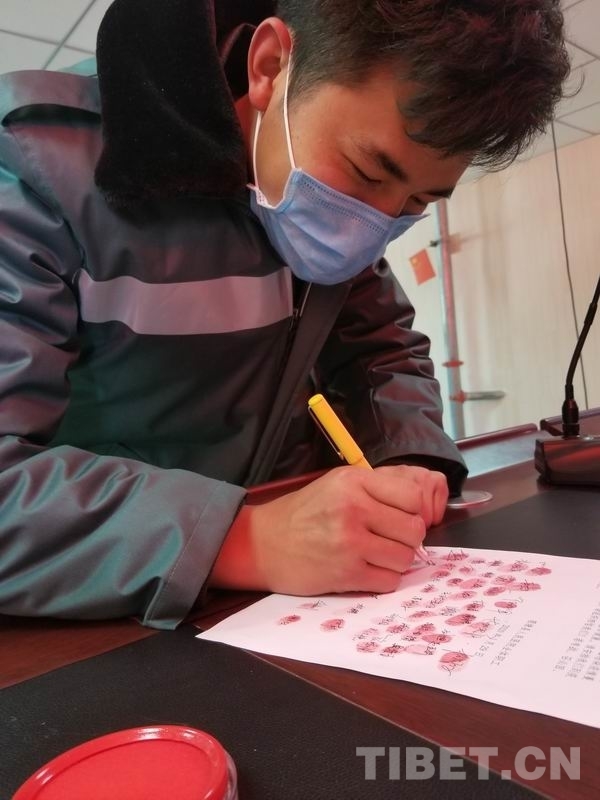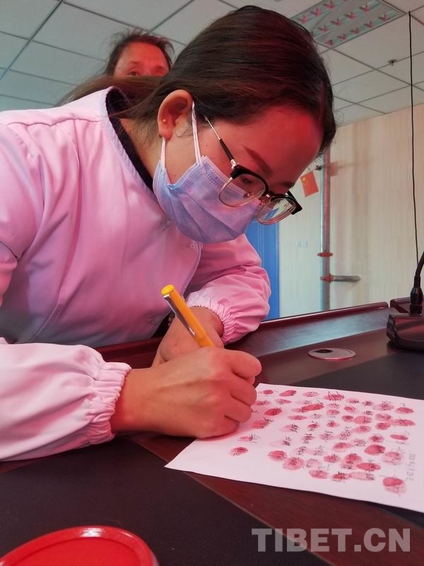 圖為理塘縣人民醫(yī)院醫(yī)護人員在請戰(zhàn)書上莊嚴簽名 攝影:格卓瑪