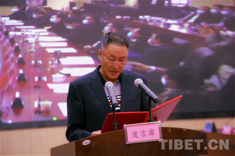 圖為國家一級演員多布杰宣讀倡議書 攝影:趙二召