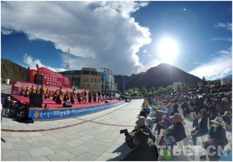 在文藝演出開始前,來自仁青林搬遷點的洛桑云丹老人講述了他的搬遷歷程,他將中央第七次西藏工作座談會、“四講四愛”以及中央、西藏自治區(qū)黨委、山南市委有關加強民族團結的相關精神,用通俗易懂的話語講給大家聽,讓大家明白民族團結的重大意義,理解團結穩(wěn)定是福、分裂動亂是禍的道理。