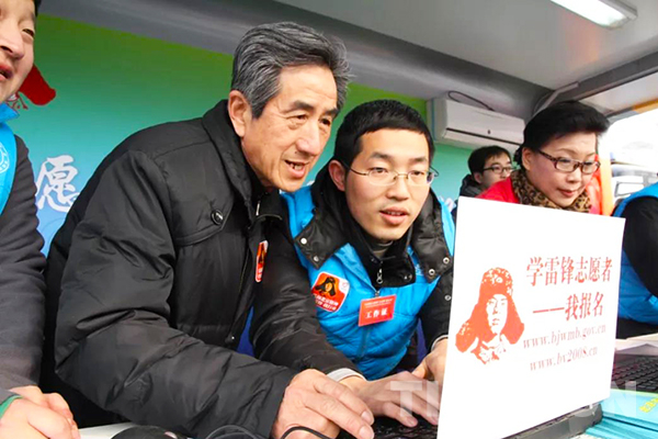 圖為葉如陵在學(xué)雷鋒志愿者活動(dòng)中