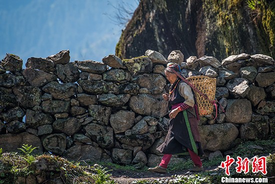 圖為陳塘鎮(zhèn)夏爾巴人婦女(資料圖) 中新社記者 劉蔭 攝