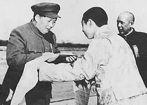 圖為十世班禪向毛澤東主席敬獻(xiàn)哈達(dá) (喜饒尼瑪提供)