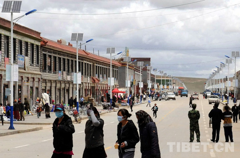圖為藏北班戈縣城路兩邊新安裝的太陽能路燈 唐召明2009年攝