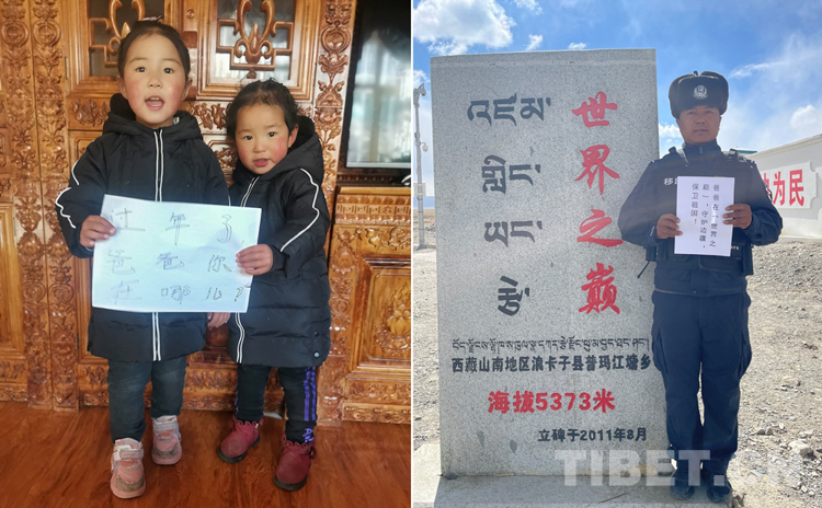 這是一張拼版照片,小女孩名叫旦增諾央,今年8歲,到現(xiàn)在還沒有和爸爸一起過過年。爸爸旦增尼瑪是日喀則邊境管理支隊(duì)亞熱邊境派出所所長,春節(jié)將至,他和戰(zhàn)友們堅(jiān)守在海拔5300多米的中尼邊境一線,他通過這種方式表達(dá)對(duì)孩子的思念,相信慢慢長大的孩子一定能夠理解自己。