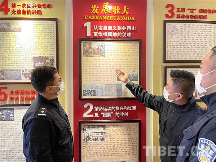 中國西藏網(wǎng)訊 近日,西藏自治區(qū)拉薩出入境邊防檢查站執(zhí)勤一隊黨支部組織開展“學(xué)黨史、憶初心、擔(dān)使命”主題黨日教育活動,旨在深入貫徹習(xí)近平總書記在黨史學(xué)習(xí)教育動員大會上的重要講話精神,進(jìn)一步加強全體黨員愛國主義教育。