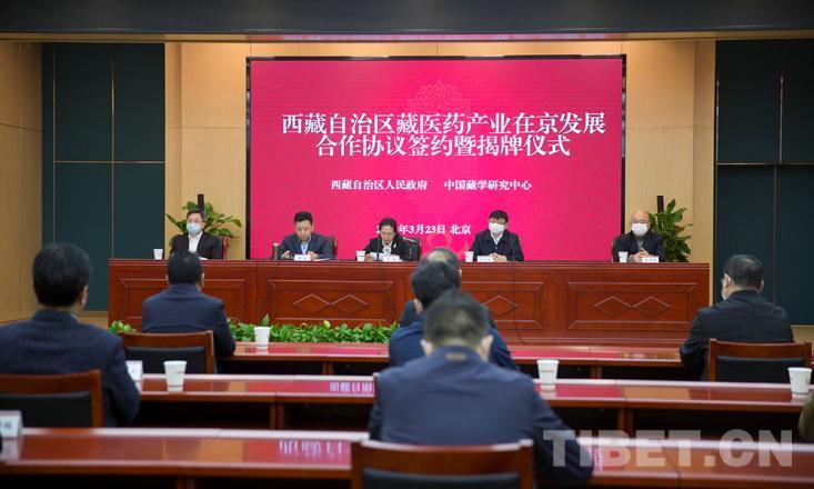 圖為西藏自治區(qū)藏醫(yī)藥產(chǎn)業(yè)在京發(fā)展合作協(xié)議簽約暨揭牌儀式現(xiàn)場 攝影:許娜