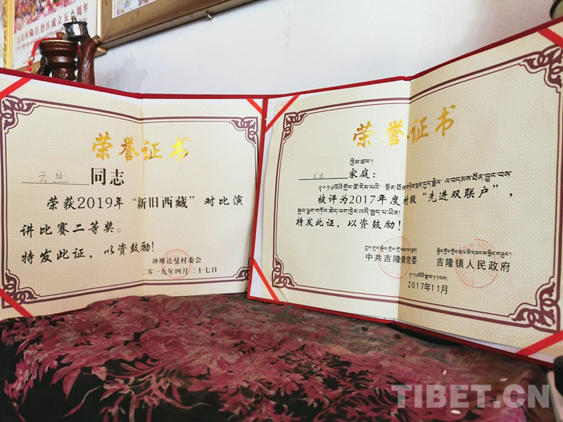 圖為云丹獲得的榮譽證書 攝影:德吉卓瑪
