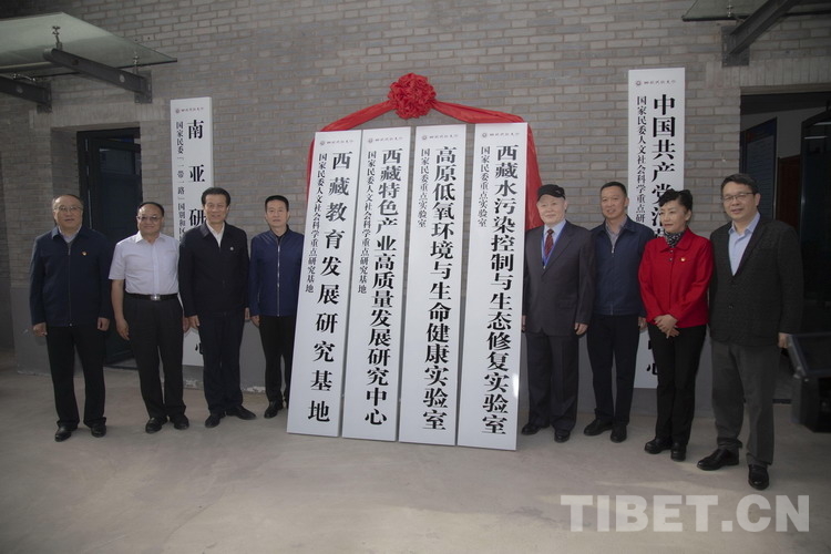 研討會開幕式之前,與會領導為西藏教育發(fā)展研究基地、西藏特色產業(yè)高質量發(fā)展研究中心、高原低氧環(huán)境與生命健康實驗室、西藏水污染控制與生態(tài)修復實驗室同時掛牌揭幕。大會主旨發(fā)言之后,西藏民族大學黨委常委、副校長史本林、西藏駐格爾木辦事處(藏青工業(yè)園區(qū))黨委書記邱川共同簽訂雙方合作框架協(xié)議,旨在加強科研交流合作,共同為西藏社會高質量發(fā)展做出貢獻。
