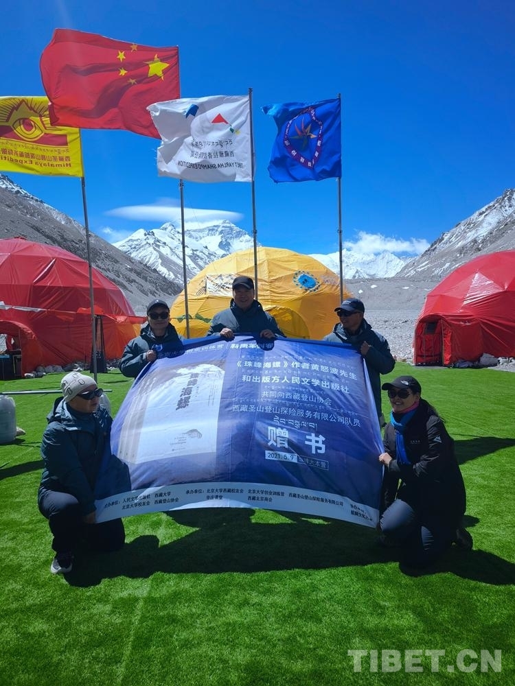 中國西藏網(wǎng)訊 5月9日,在位于西藏自治區(qū)日喀則市的珠峰大本營,長篇小說《珠峰海螺》的作者黃怒波先生和該書的出版方人民文學(xué)出版社,共同向日喀則市、西藏登山協(xié)會(huì)、西藏圣山登山探險(xiǎn)服務(wù)有限公司隊(duì)員贈(zèng)書。