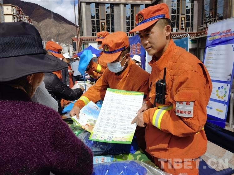 中隊(duì)指戰(zhàn)員同卡若區(qū)應(yīng)急管理局工作人員一起走上街頭,在昌都市茶馬廣場、昌慶街等人員密集的鬧市區(qū),向過往群眾認(rèn)真講解防災(zāi)減災(zāi)知識,發(fā)放印有地震自救互救、防火安全常識、抗洪搶險等標(biāo)語的畫冊,及防火宣傳小帽、防火宣傳圓珠筆、購物袋等宣傳物品。