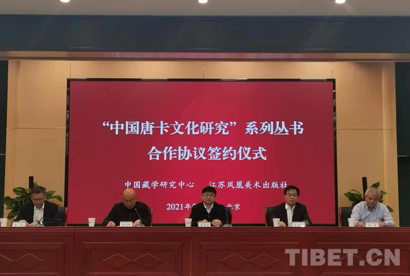 簽約儀式上,中國(guó)藏學(xué)研究中心與江蘇鳳凰美術(shù)出版社簽署《“中國(guó)唐卡文化研究”系列叢書合作協(xié)議》。據(jù)悉,本項(xiàng)目作為江蘇鳳凰美術(shù)出版社的十四五重點(diǎn)規(guī)劃項(xiàng)目,計(jì)劃五年完成。(中國(guó)西藏網(wǎng) 記者/孫?。?/p>