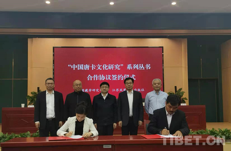 中國(guó)西藏網(wǎng)訊 5月12日,中國(guó)藏學(xué)研究中心與江蘇鳳凰出版?zhèn)髅郊瘓F(tuán)江蘇鳳凰美術(shù)出版社就“中國(guó)唐卡文化研究”系列叢書合作協(xié)議簽字儀式在京舉行。藏研中心黨組書記陳宗榮,江蘇省委宣傳部常務(wù)副部長(zhǎng)、省新聞出版局(省版權(quán)局)局長(zhǎng)、省電影局局長(zhǎng)焦建俊,江蘇鳳凰美術(shù)出版社社長(zhǎng)陳敏,藏研中心藏醫(yī)藥研究所副所長(zhǎng)羅布扎西分別致辭。藏研中心副總干事廉湘民主持簽字儀式。