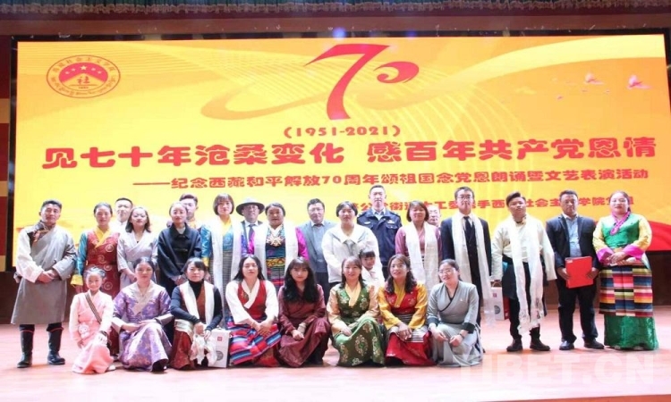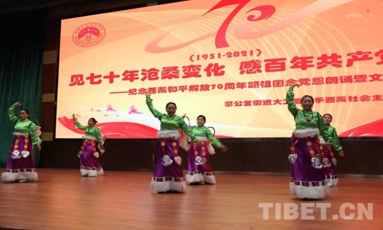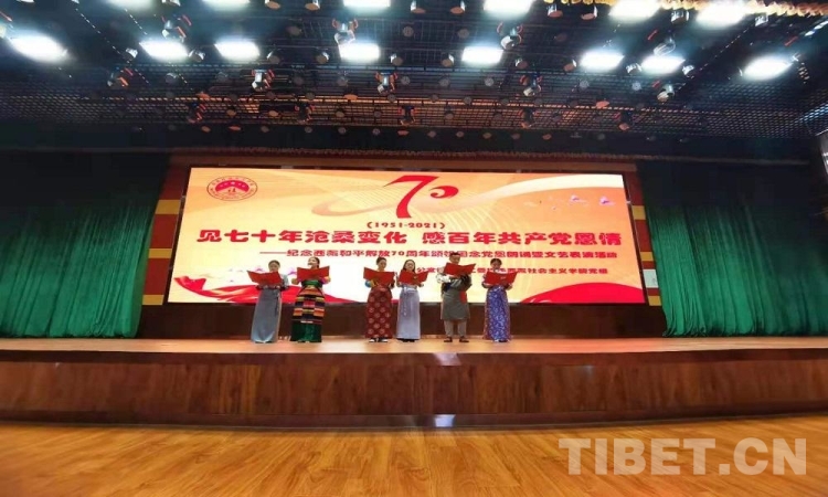 5月23日是西藏和平解放70 周年紀念日。23日上午,由西藏自治區(qū)拉薩市蔡公堂街道和西藏社會主義學院共同舉辦的紀念西藏和平解放70周年頌祖國、念黨恩朗誦暨文藝表演活動舉行。現場鮮花嬌艷,燈光炫目,旋律悠揚,歌聲嘹亮。