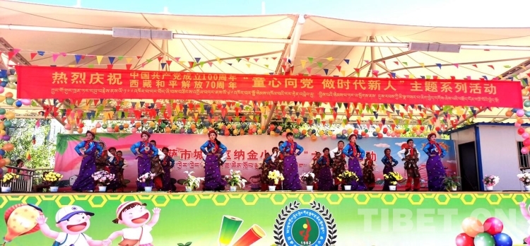 圖為西藏自治區(qū)拉薩市城關區(qū)納金小學“童心向黨、做時代新人”六一兒童節(jié)活動現(xiàn)場