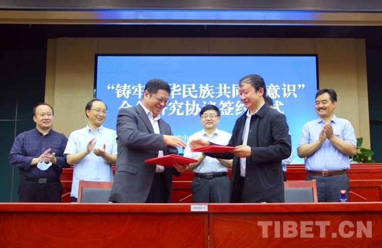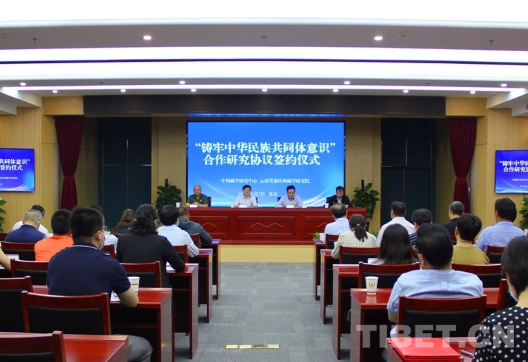 中國(guó)西藏網(wǎng)訊 6月7日,中國(guó)藏學(xué)研究中心與云南省迪慶州藏學(xué)研究院(迪慶州鑄牢中華民族共同體意識(shí)研究教育實(shí)踐中心)合作開展“鑄牢中華民族共同體意識(shí)”研究協(xié)議簽約儀式在北京舉行。中國(guó)藏學(xué)研究中心黨組書記陳宗榮、迪慶州藏學(xué)研究院黨組書記和樹軍分別致辭。中國(guó)藏學(xué)研究中心總干事鄭堆主持儀式,簽約雙方相關(guān)部門負(fù)責(zé)人及部分專家學(xué)者參加了儀式。