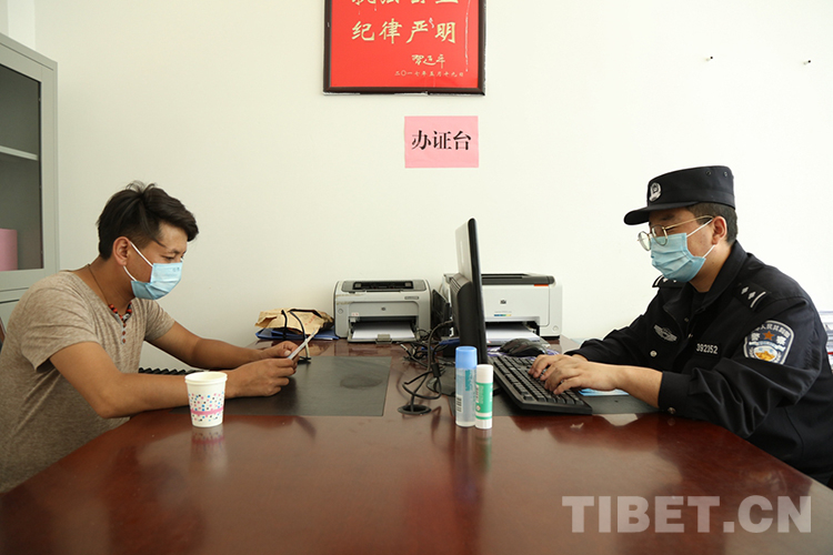 圖為民警開設(shè)“綠色通道”為工人辦理通行證 攝影:鄒興國
