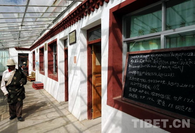 走進(jìn)村委會的玻璃式采暖房,首先映入眼簾的是申扎縣委頒發(fā)的“安全文明村”金色牌匾,以及藏漢文兩種文字的學(xué)習(xí)墻報。