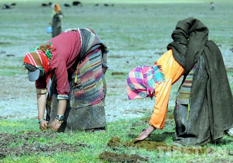 申扎縣申扎鎮(zhèn)三村成立了專業(yè)合作經(jīng)濟(jì)組織,大家分工明確,各司其職。這是分工撿拾攤曬牛糞燃料的藏族婦女(唐召明2009年攝)