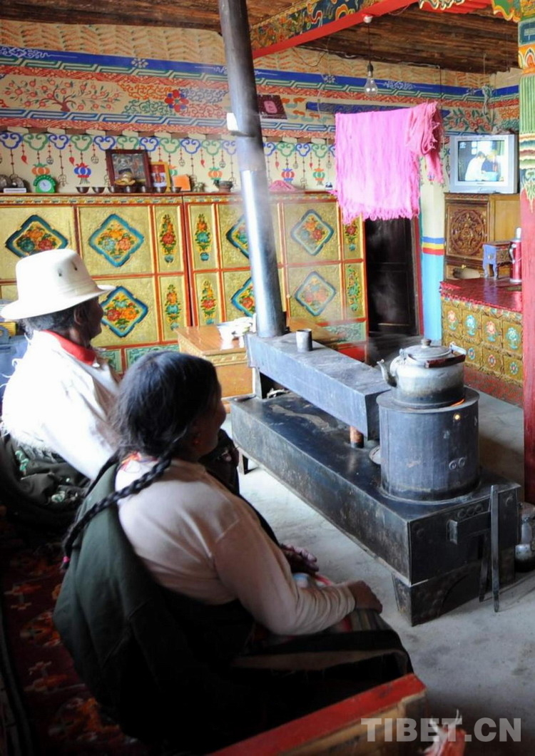這是申扎縣申扎鎮(zhèn)三村牧民家庭利用太陽能發(fā)電來看電視(唐召明2009年攝)