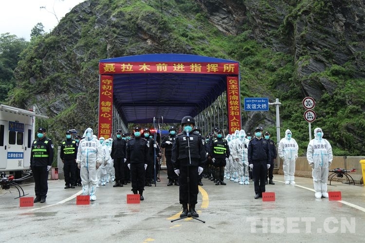 誓師大會(huì)奏唱中華人民共和國(guó)國(guó)歌、中國(guó)人民警察警歌,日喀則、聶拉木兩個(gè)前進(jìn)指揮所代表基層作表態(tài)發(fā)言,全體參戰(zhàn)民警進(jìn)行了莊嚴(yán)宣誓。