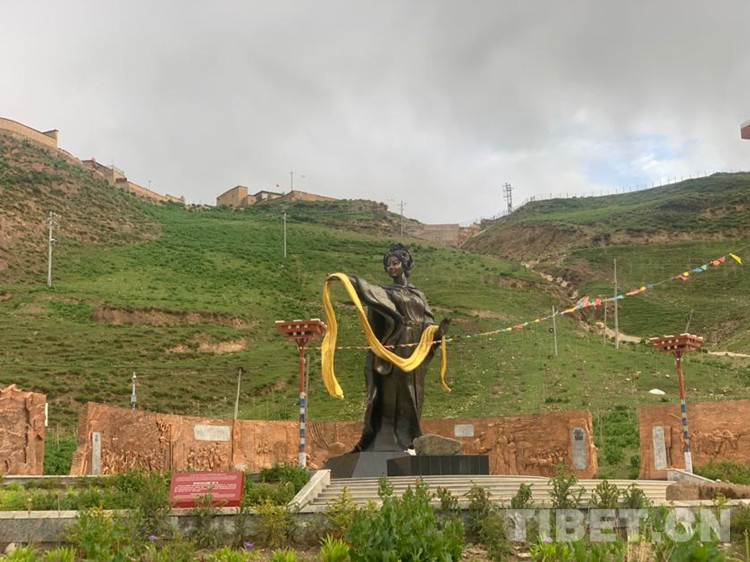 中國西藏網(wǎng)訊 “天下沒有遠方,人間都是故鄉(xiāng)”。我們奔馳在那曲市嘉黎縣到比如縣的公路上,車上播放著話劇《文成公主》的一段插曲,不禁令人想起1300多年前,美麗的文成公主背井離鄉(xiāng),把畢生獻給西藏這片土地的故事。陪同調(diào)研組的尼瑪才讓同志突然說道:“我們快到今天的第一個目的地了”,隨之一座美麗端莊、栩栩如生的公主雕像便映入了眼簾,原來我們已到達了比如縣怒江緣文成公主廣場。