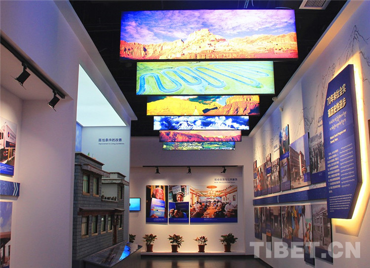 據(jù)陳宗榮介紹,“豐功偉業(yè)”展覽以西藏和平解放70年光輝歷程為主線,設(shè)計(jì)了“社會(huì)制度實(shí)現(xiàn)偉大飛躍”“新時(shí)代新飛躍”“西藏的發(fā)展進(jìn)步根本在于中央的關(guān)心”等7個(gè)主題展區(qū)。展覽運(yùn)用350多幅圖片、61件(套)珍貴實(shí)物和文獻(xiàn),采用虛擬現(xiàn)實(shí)、多媒體互動(dòng)等現(xiàn)代科技手段,利用實(shí)物模型、場(chǎng)景復(fù)原、幻影成像、三維模型等多種形式,集中展現(xiàn)了70年來西藏發(fā)生的歷史性轉(zhuǎn)變、取得的歷史性成就。