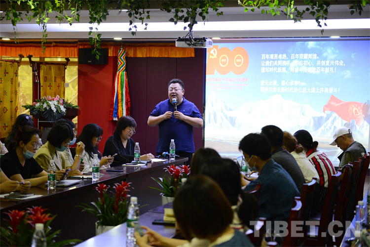 圖為“同心·共鑄中國(guó)心”組委會(huì)項(xiàng)目辦公室主任薛艷斌行前介紹果洛州具體情況