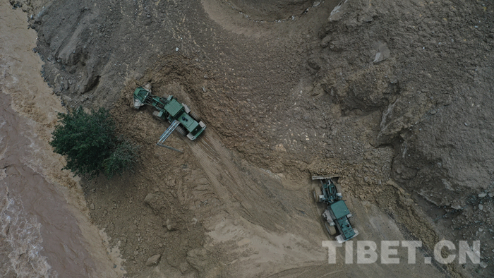圖為該支隊(duì)救援官兵正在對(duì)川藏線怒江溝泥石流災(zāi)害進(jìn)行搶通