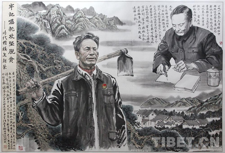 中國(guó)西藏網(wǎng)訊 近日,《丹青頌偉業(yè)——貴州“脫貧攻堅(jiān)”百米畫(huà)卷》主題展覽在北京民族文化宮展出。此次展覽由百名書(shū)畫(huà)家、辭賦作家,以傳統(tǒng)的藝術(shù)形式,按照“時(shí)代楷模代表人物”“移民安居典范村寨”“交通巨變橋梁寫意”“生態(tài)家園珍禽花卉”“脫貧攻堅(jiān)辭賦書(shū)法”五個(gè)篇章,以筆墨講述貴州“脫貧攻堅(jiān)”的點(diǎn)滴故事,描繪貴州人民“牢記囑托、感恩奮進(jìn)”激發(fā)的磅礴偉力,展現(xiàn)貴州脫貧攻堅(jiān)取得的偉大成就。其中,“時(shí)代楷模代表人物”篇章所描繪的故事深深打動(dòng)著現(xiàn)場(chǎng)的觀眾,本文特選其中的部分作品,奉獻(xiàn)給讀者。