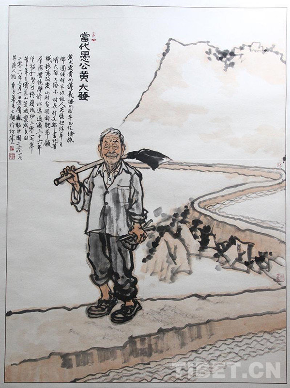 圖為中國(guó)畫(huà)作品《黃大發(fā)——遵義市播州區(qū)平正仡佬族鄉(xiāng)團(tuán)結(jié)村名譽(yù)村支書(shū)》,作者錢文觀
