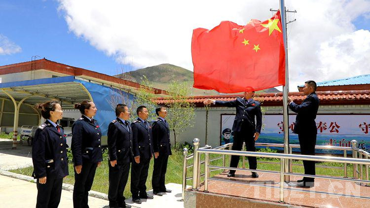 圖為錯那縣稅務局升國旗儀式 攝影:張福東