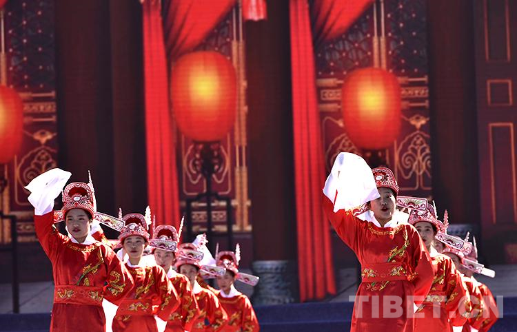 圖為2021雅礱文化旅游節(jié)開幕式文藝演出現場,山南市第二高級中學學生表演黃梅戲《女駙馬》選段 攝影:王媛媛