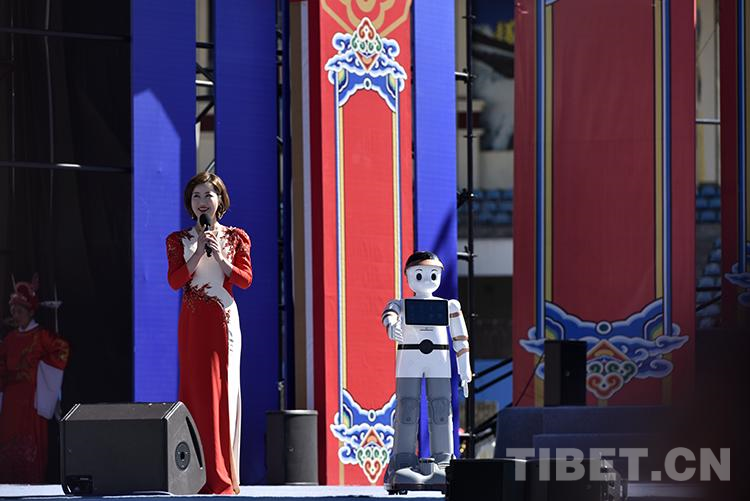圖為2021雅礱文化旅游節(jié)開幕式文藝演出現場,主持人與機器人互動 攝影:王媛媛