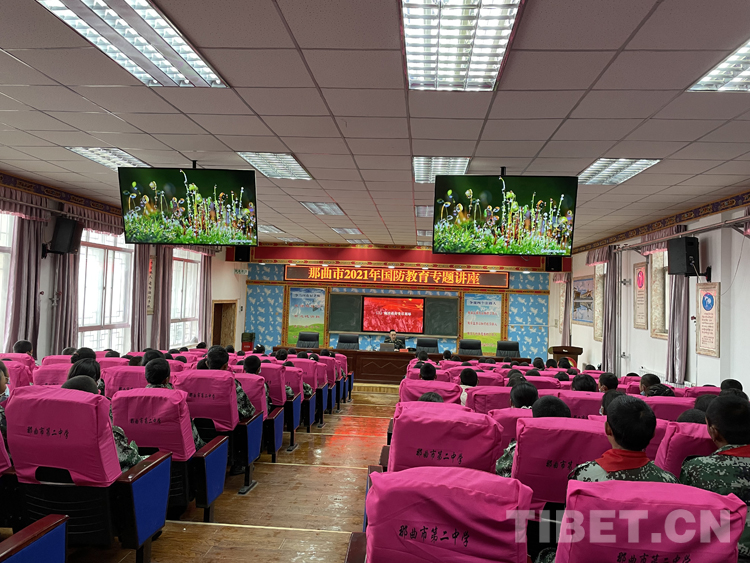 當(dāng)日下午,邀請那曲軍分區(qū)干部走進(jìn)校園為那曲市二中學(xué)生開展一次國防教育專題講座。專題講座開始前,首先由七年級格桑次仁和巴桑旺姆同學(xué)為大家深情朗誦《請黨放心 強軍有我》,一首詩詞朗誦把大家緩緩帶入課堂。由那曲軍分區(qū)唐鵬同志運用豐富的知識和大量史實,圍繞國防教育的重要意義等內(nèi)容為大家作了一場精彩的講座,利用媒體視頻、圖片資料給師生們講解了我國國防現(xiàn)狀、國防建設(shè)的重要作用,讓學(xué)生掌握基本軍事知識技能,加深對軍隊的認(rèn)識和理解,整個講座旁征博引,數(shù)據(jù)翔實,觀點敏銳,既有清晰的歷史脈絡(luò),又有具體事件的介紹,在同學(xué)中引起了強烈共鳴。