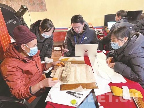 圖為工作人員對(duì)古籍文獻(xiàn)進(jìn)行登記、整理、分類、對(duì)勘 西藏自治區(qū)文物局供圖