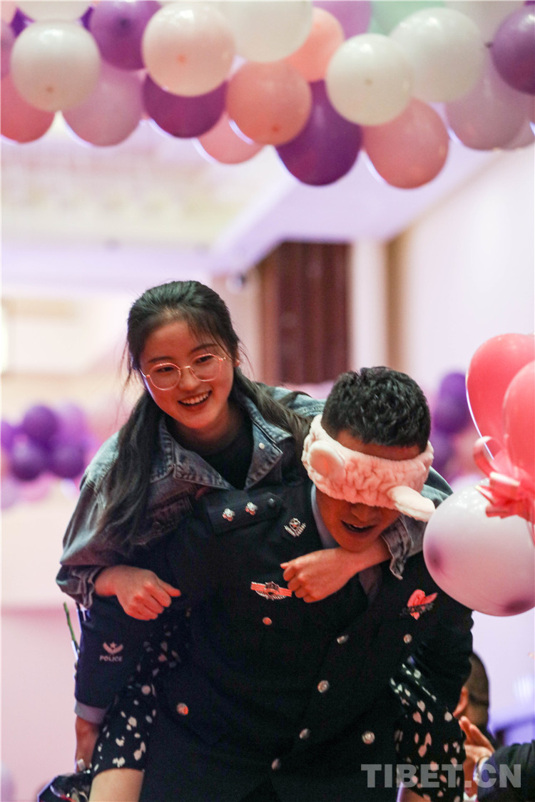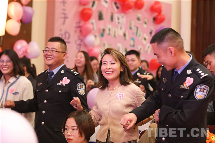 活動過程中,總站形象宣傳片《我是誰》,向女嘉賓們展現(xiàn)了西藏移民管理警察的職業(yè)特點,使女嘉賓對民警工作職責(zé)產(chǎn)生了初步的認識。在主持人的引導(dǎo)下,精彩的才藝展示和豐富的游戲環(huán)節(jié)很快將現(xiàn)場氣氛推向一個接一個的高潮。互動游戲“牽手牽愛”“心有靈犀”“守護愛情”“唯愛接力”通過聆聽詩句抓緊手指、借助比劃你問我答,相互協(xié)助完成任務(wù)等方式增進了男女嘉賓之間的了解和默契,促進了相互之間更好交流。男女嘉賓才藝表演和日喀則邊境管理支隊1753樂隊送上的精彩曲目,令活動現(xiàn)場青春洋溢。最終,18對男女嘉賓互生情愫,牽手成功,36對交換聯(lián)系方式,開啟更加深入的幸福交流。
